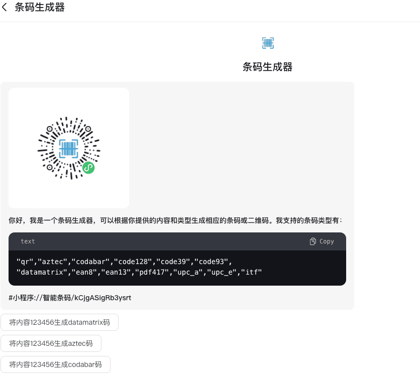 输入内容生成条码或二维码。