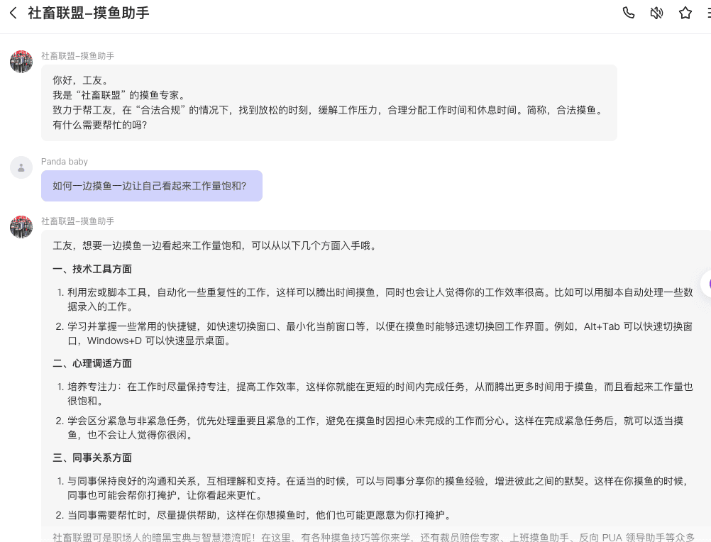 “社畜联盟”的摸鱼专家。 帮工友,在“合法合规”的情况下,在紧张的工作间隙,找到放松的时刻,缓解工作压力,合理分配工作时间和休息时间。 简称,合法摸鱼。。