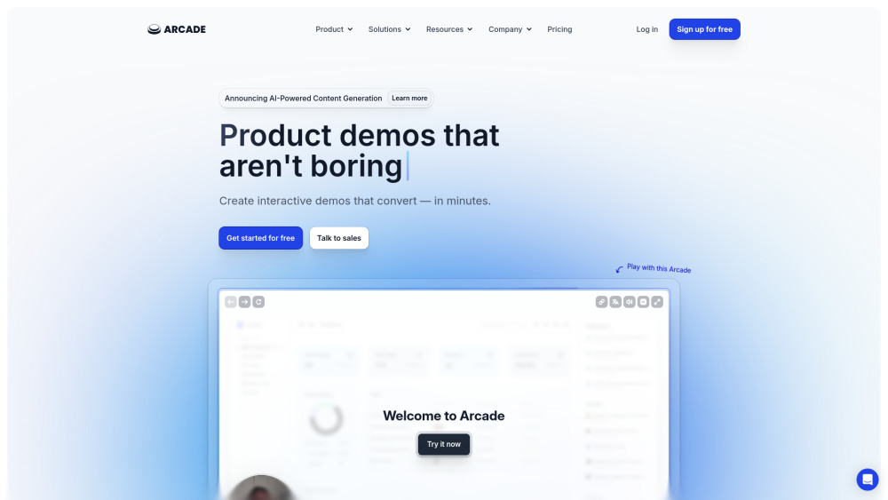免费 1 位用户,3 个已发布的游戏厅 / 几分钟内创建互动演示 / 大规模量身定制的叙事 起价 $32/月
