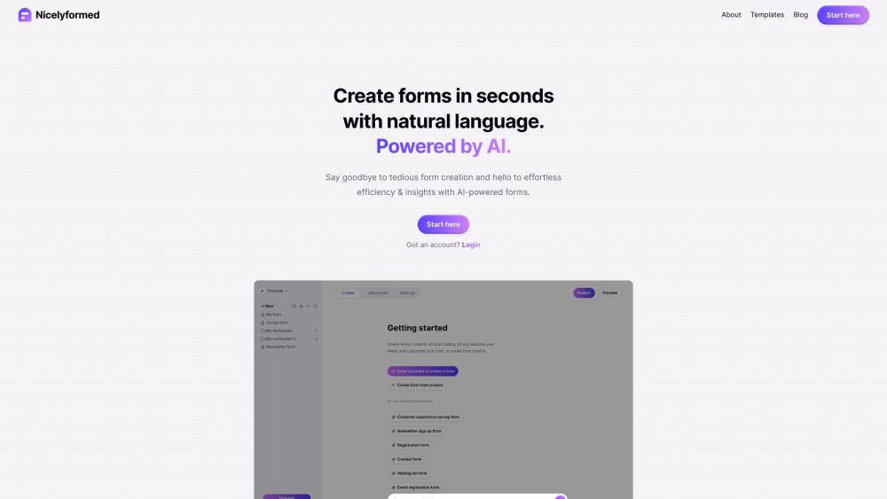 每月500次免费回应 / AI辅助的表单创建 / AI驱动的分析 从每月8美元起