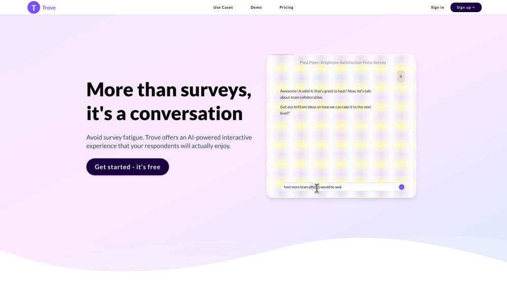 免费3次调查,每月100个响应 / AI驱动的情感分析 / 直观的调查创建 从每月24美元起