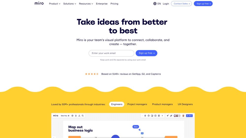 免费3个可编辑的白板 / 在线协作白板 / AI驱动的协作 每个成员每月从10美元起