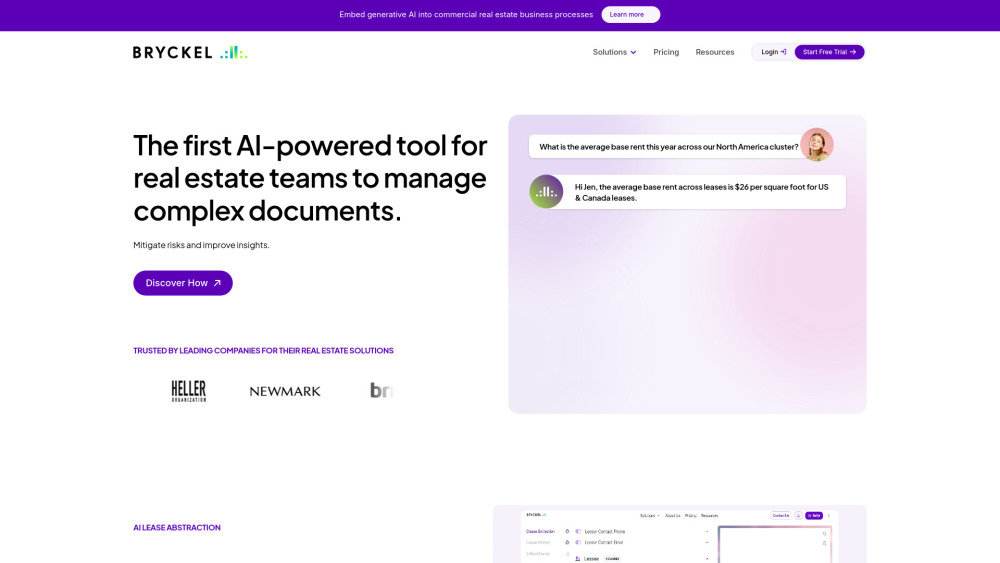 免费试用 / AI 驱动的租约抽象 / 文档分析 / 自动化房地产工作流程