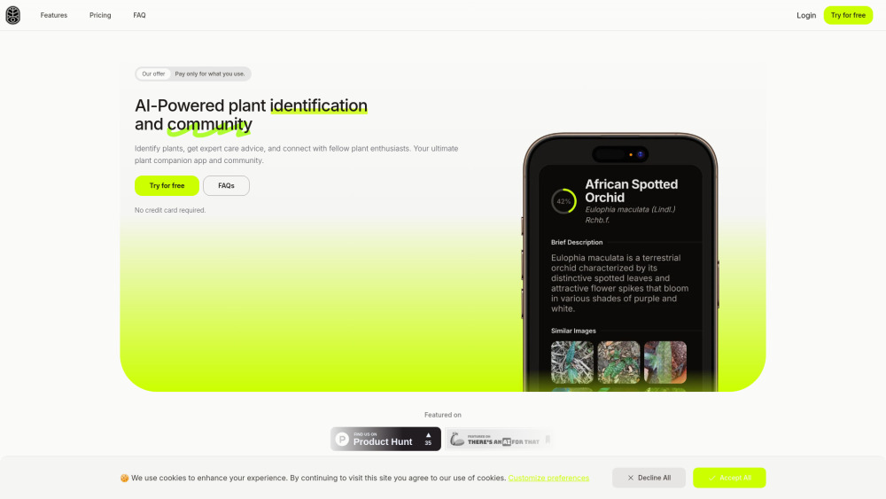 注册时提供30积分 / 即时AI植物识别 / 个性化护理说明 从€3起可识别15种植物