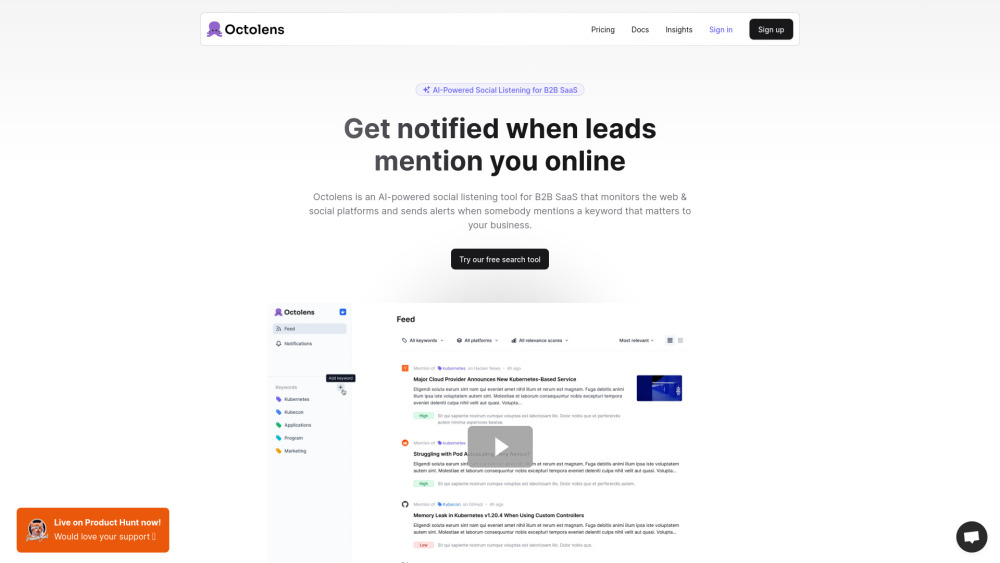 7天免费试用,1000次提及 / AI驱动的社交聆听 / 实时警报和AI相关性评分 从每月49美元起