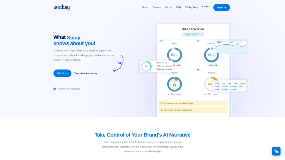 获得对人工智能品牌知识的透明度 / 管理声誉风险 / 优化战略定位并与竞争对手进行基准比较 起价为每月19.95美元,包含8份报告