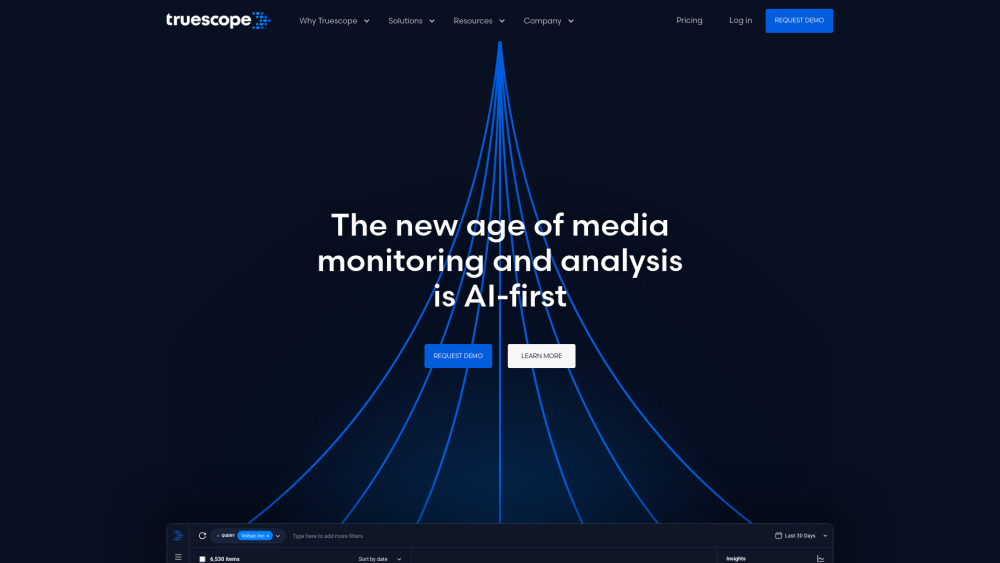 免费试用 / 实时媒体监测与社交倾听 / 基于人工智能的媒体智能 / 无限制搜索与用户
