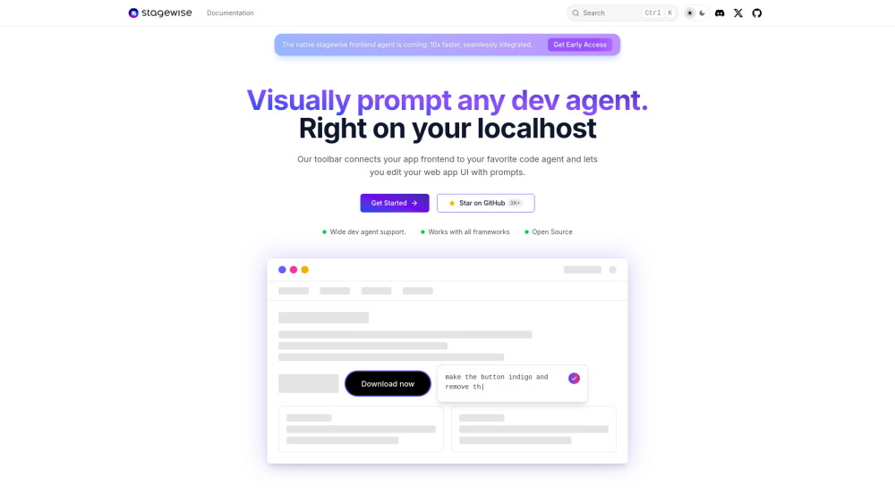 免费 / 在你的代码库中进行视觉编程 / 使用提示编辑网络应用程序的用户界面