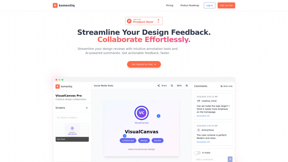1个项目,10个屏幕/项目,40个AI积分(一次性)免费/集中设计反馈/AI驱动的可执行任务 每月起价12美元