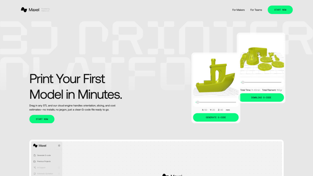 / 自动切片与方向 / 即时 Gcode 生成 / 不需要切片知识