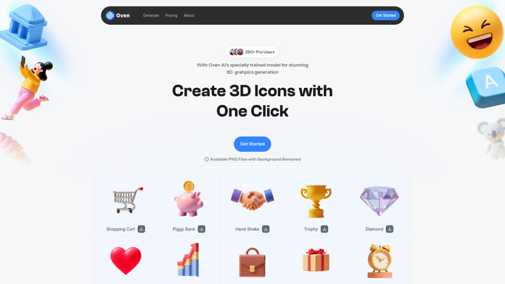 独特的、具有凝聚力的 3D 图标 / AI 驱动设计 / 背景去除 从 $5 起 / 1000 积分