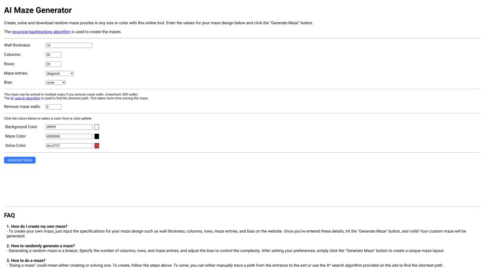 免费 / 创建和解决自定义迷宫 / 生成和下载随机迷宫 / A*寻路算法