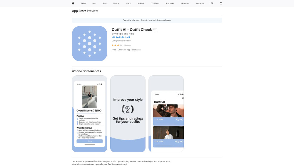 AI 驱动的服装反馈 / 个性化的时尚建议和评分 价格从 14.99 兹罗提起