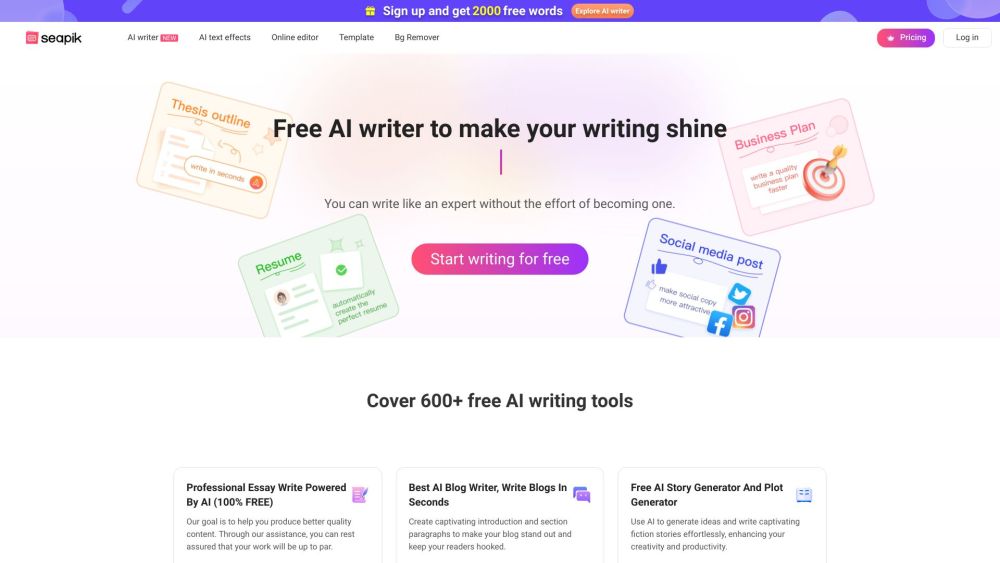 2000个免费词汇 / AI写作工具 / AI文本生成器 从每月4.9美元起