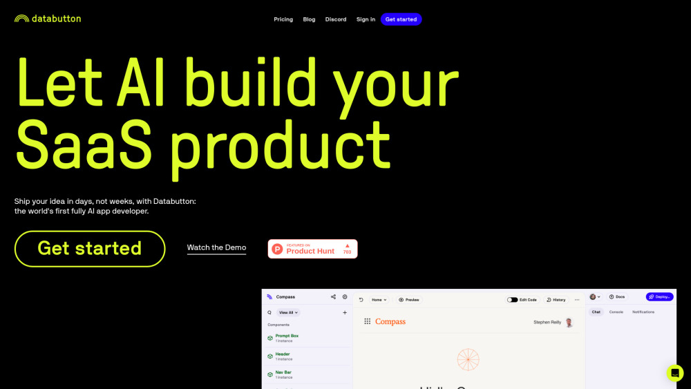 AI根据自然语言构建React前端和Python后端 / 利用推理AI构建SaaS产品 从每月20美元(75个积分)
