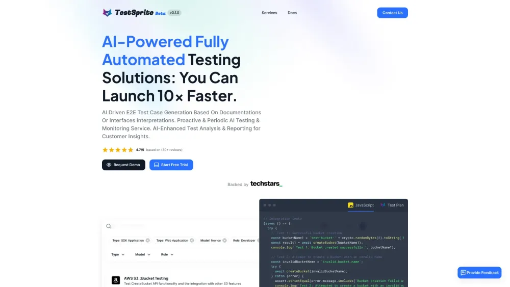 每月免费150个AI生成的测试用例/人工智能驱动的测试用例生成/自动化API回归测试/精准的错误追踪 从每月25美元起
