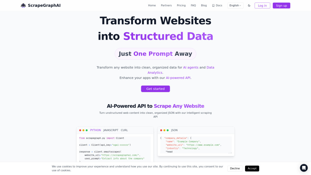100万个免费令牌 / AI驱动的网页抓取,支持自然语言 / 提取各种数据类型并自动分页 / 无需编码 每百万个令牌起价1美元