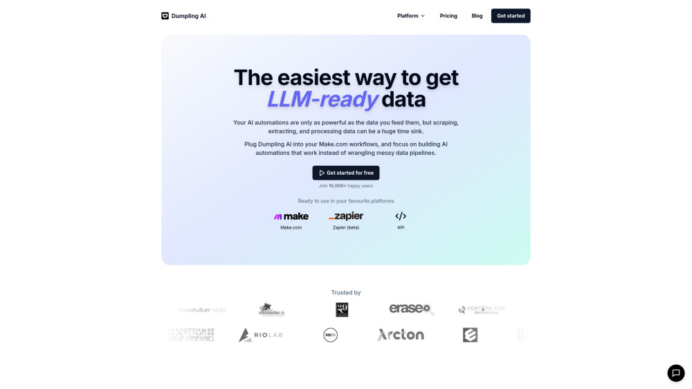 包含50个积分 / 将网站转换为结构化数据 / 将非结构化网页内容转换为干净、组织良好的JSON 每月起价20美元