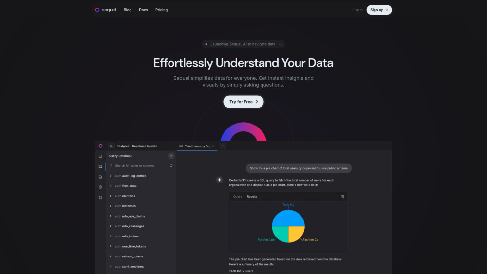 通过文本生成SQL查询,使用AI / 生成优化的SQL查询 / 精确的查询与模式支持 起价$8/月