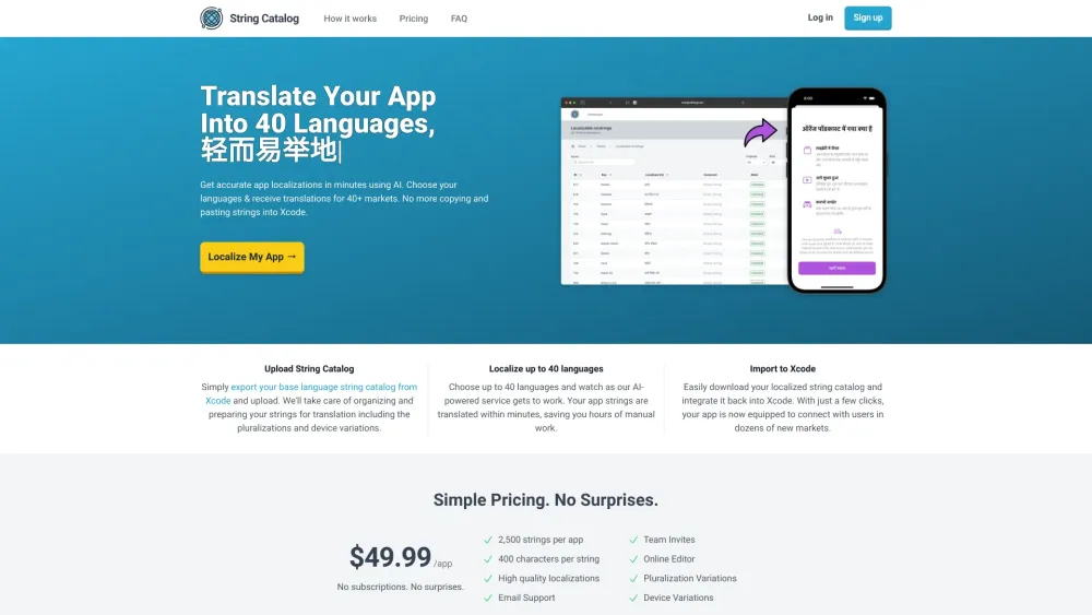 添加你的第一种语言,免费!/ 自动化的 iOS 和 Android 本地化 / 基于 AI 的准确性 从每月 $15 开始