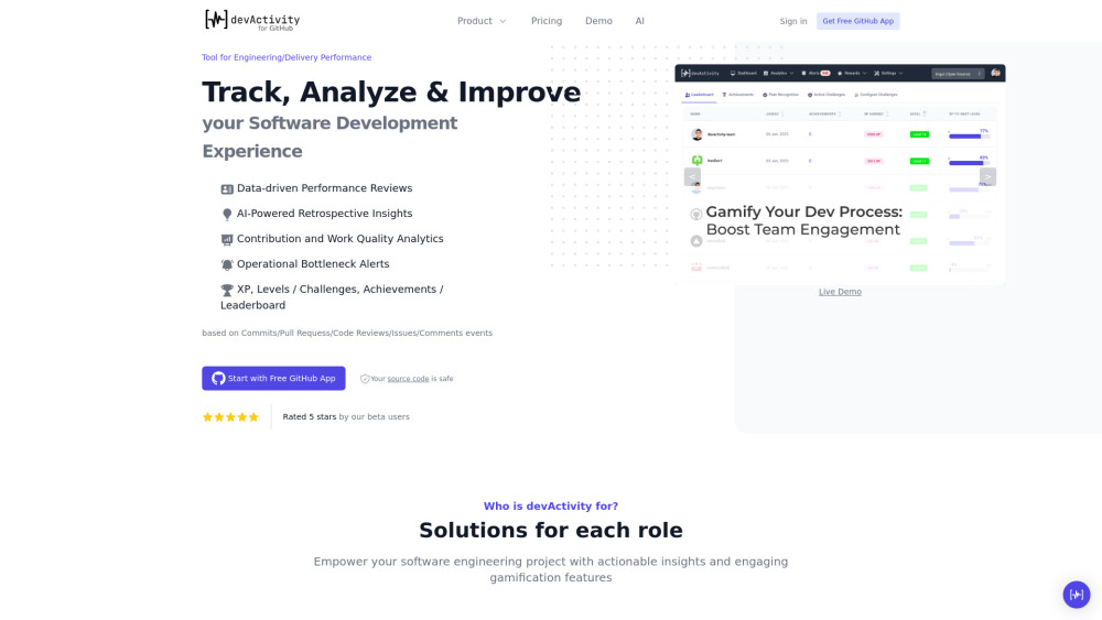 每月免费1个代码库,每月50积分 / 基于AI的Git报告 / GitHub和Bitbucket集成 起价$9.99/月