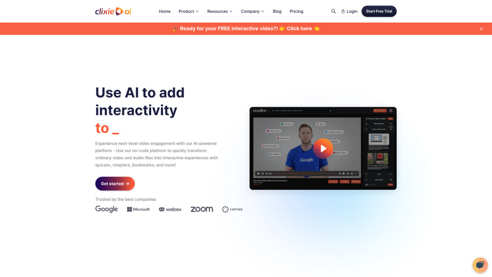 14天免费试用 / 互动视频平台 / AI驱动的增强功能 / 无需编码的平台 从$19/月起