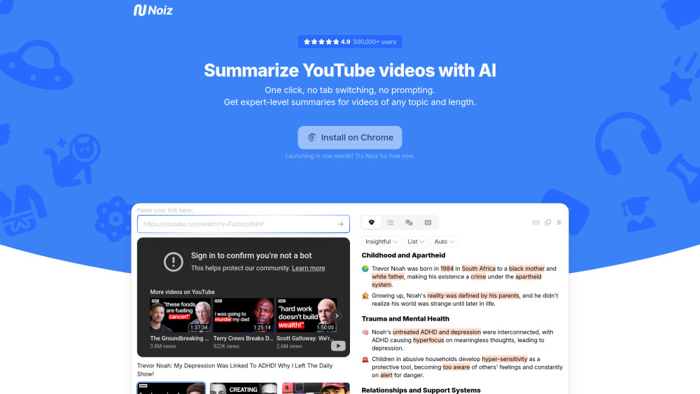 AI YouTube 视频摘要 AI视频总结 AI 智能摘要 AI生产力工具