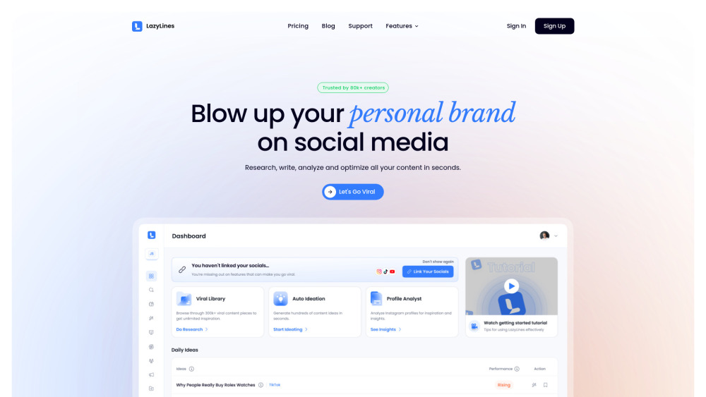 7天免费试用 / 研究病毒内容 / 与AI一起制作病毒脚本 / 分析和优化内容 从每月23美元起