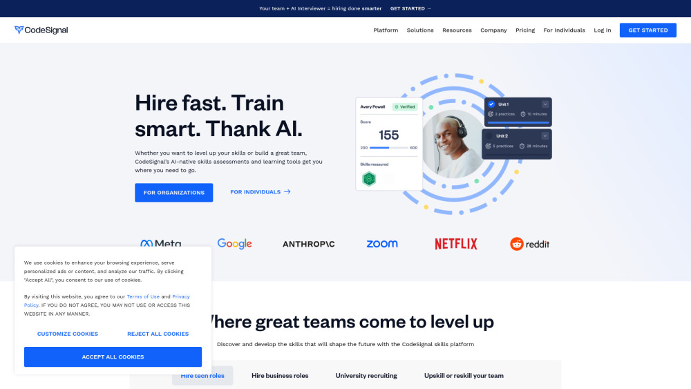 免费套餐可用 / 基于AI的学习和招聘解决方案 / 技能评估 / AI辅导与Cosmo 从每月24.99美元起
