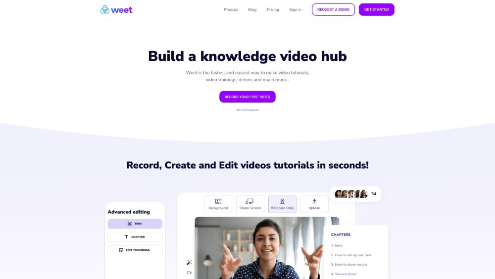 最多可免费使用10周 / 录制AI驱动的视频教程 / 创建互动培训视频 每位创作者每月起售价34美元