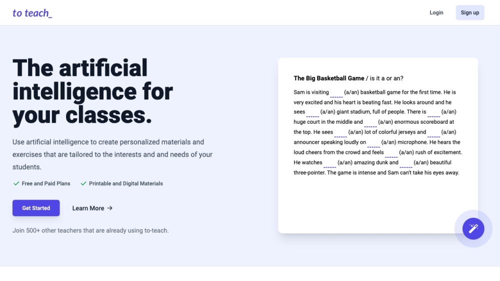 永久免费计划 / 80+个AI教师工具 / 每周节省多达10小时 每年仅需99.96美元起