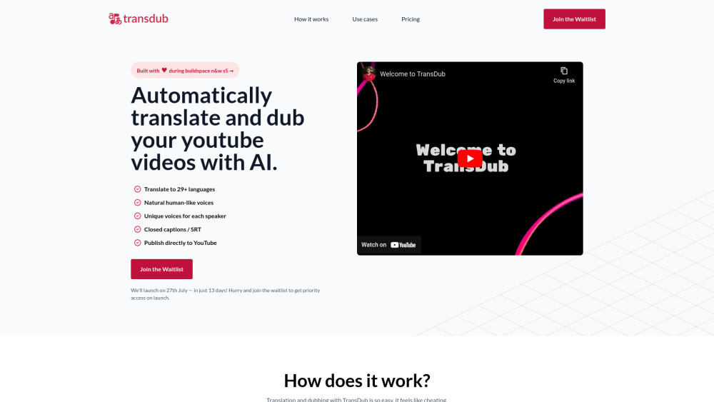 1分钟免费 / 使用AI自动翻译和配音YouTube视频 / 支持29种以上语言 每月从49美元起