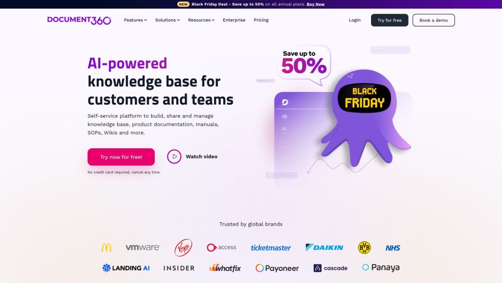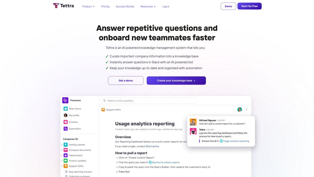 免费30天试用 / AI驱动的知识库 / 在Slack中通过AI机器人即时回答 每用户每月从$4起(按年计费,最低10个用户)