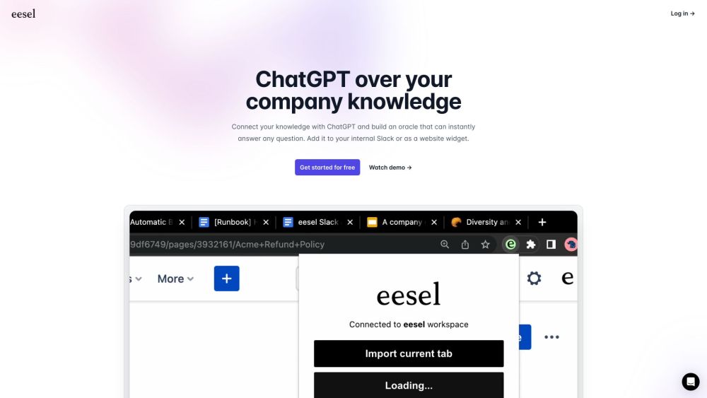 每月50条回复 50个索引页面免费 / ChatGPT基于公司知识 / 立即回答任何问题 从每月49美元起(每月500次互动)