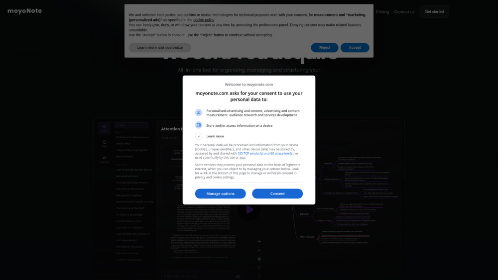 5 个对话,100MB 免费存储 / AI 思维导图 / 组织和结构化信息 从每月 $8.25 起