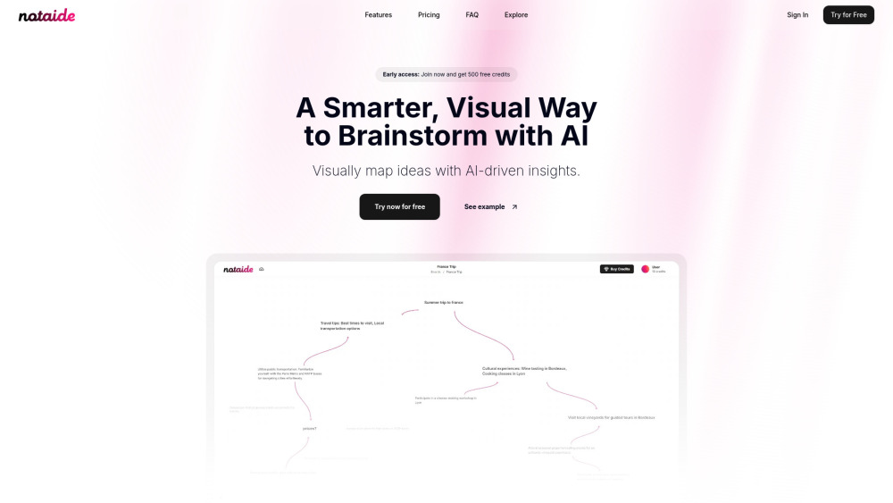 500个免费积分 / 视觉AI头脑风暴 / 组织和扩展想法 从5美元起购买100个积分