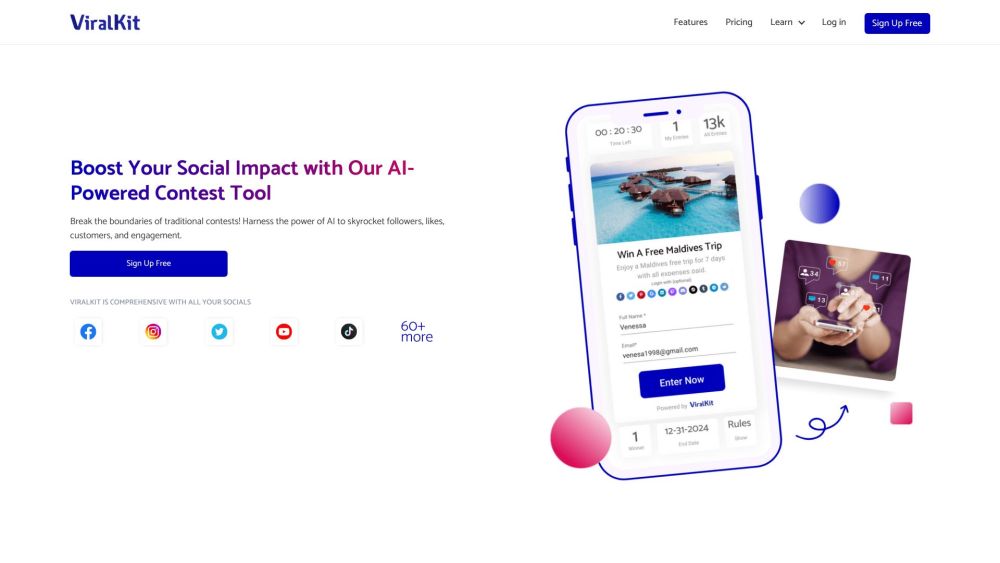 无限制的比赛和免费参赛 / AI比赛生成器 / 250+ 种参赛方式 / CRM邮箱集成 从每月29美元起