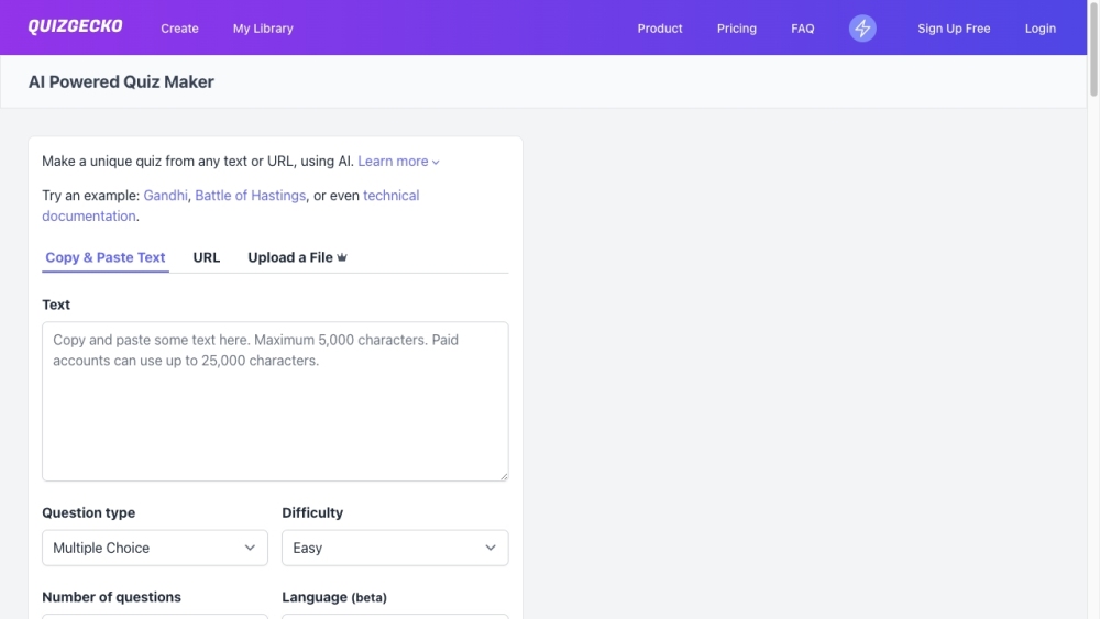 免费生成最多 5 个测验 / 从 PDF、视频和文本中生成 AI 测验 / 自定义问题 & 跟踪表现 / 几分钟内创建测验