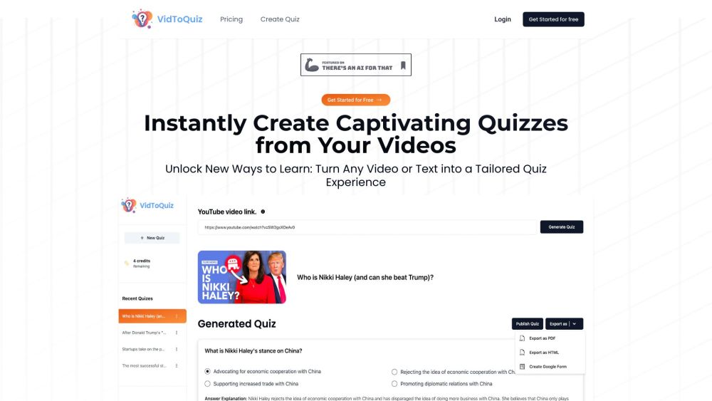 5个AI测验免费 / 文章、视频和PDF的AI测验生成器 / 提高参与度和邮箱订阅者 每年起价149美元