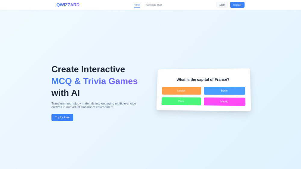 使用 AI 从文本、图像或 PDF 生成智能测验 / 选择题、判断题或填空题 从 ₹ 299 开始,生成 25 个测验