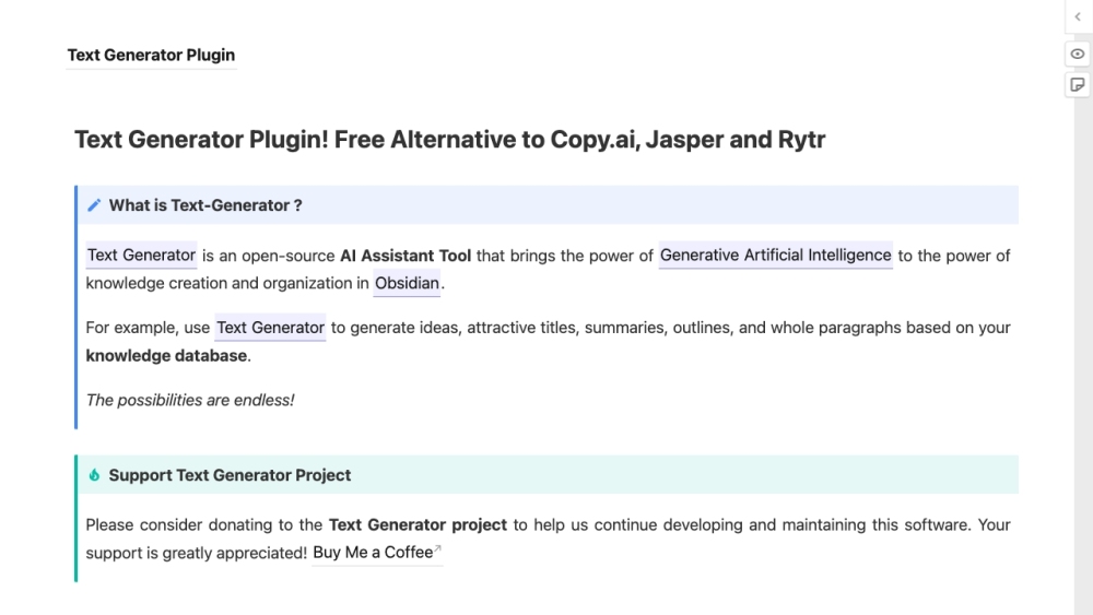 免费 / 基于人工智能的内容生成 / 针对 Obsidian 进行优化