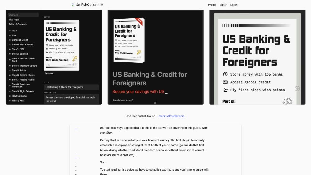 免费试用 / 以 Epub 和 PDF 格式导出 / 在线发布 / 盈利 从每月 9 美元起(最多 3 本书)