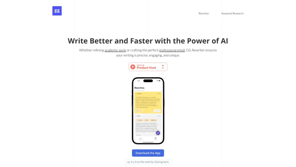 免费及无限制 / 基于AI的文本重写 / 抄袭去除 / 提高原创性和可读性