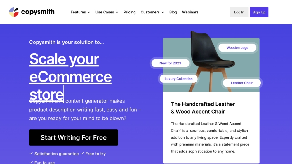 每月15,000字免费 / AI文案写手 / 文章生成器 / 产品描述生成器 从每月19美元起