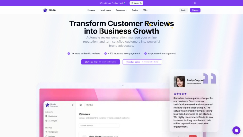 14天免费试用 / AI驱动的谷歌评论管理 / 自动化短信评论收集 / AI辅助的评论回复 每月99美元起