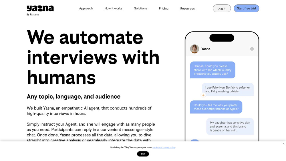 每月免费100个积分(± 10次访谈)/ 自动化类人访谈 / AI驱动的数据处理与报告 / 多语言能力 从€200/月