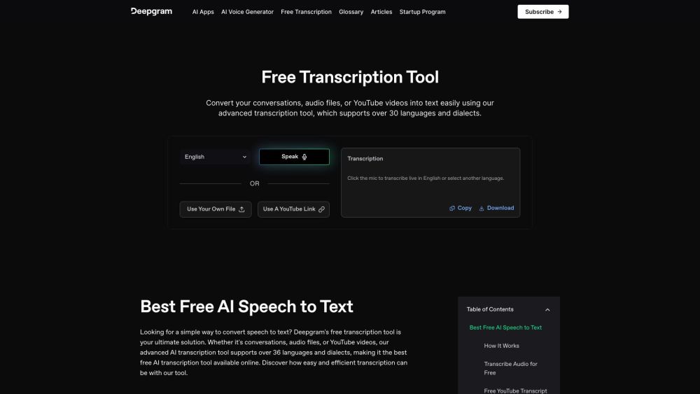 将对话、音频文件或YouTube视频转换为文本 / 支持超过36种语言