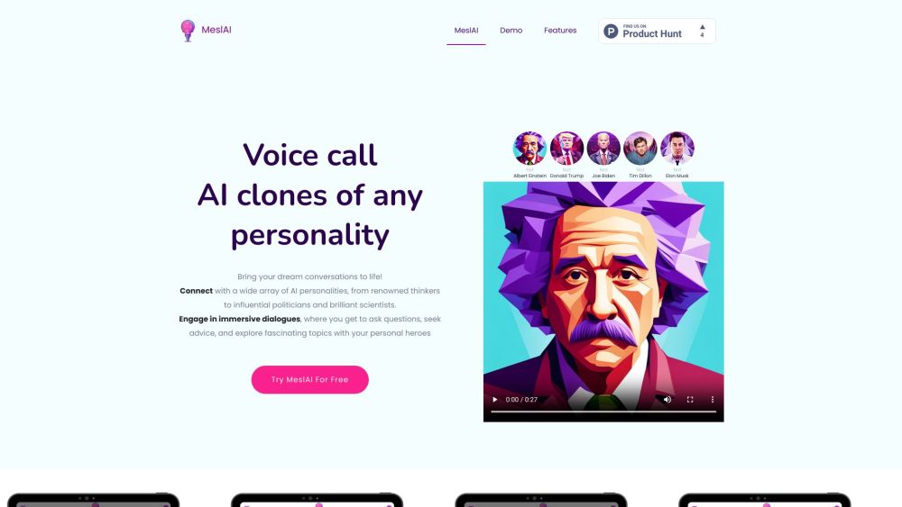 首次语音通话免费 / 任何个性的语音通话AI克隆 / 逼真的声音复制