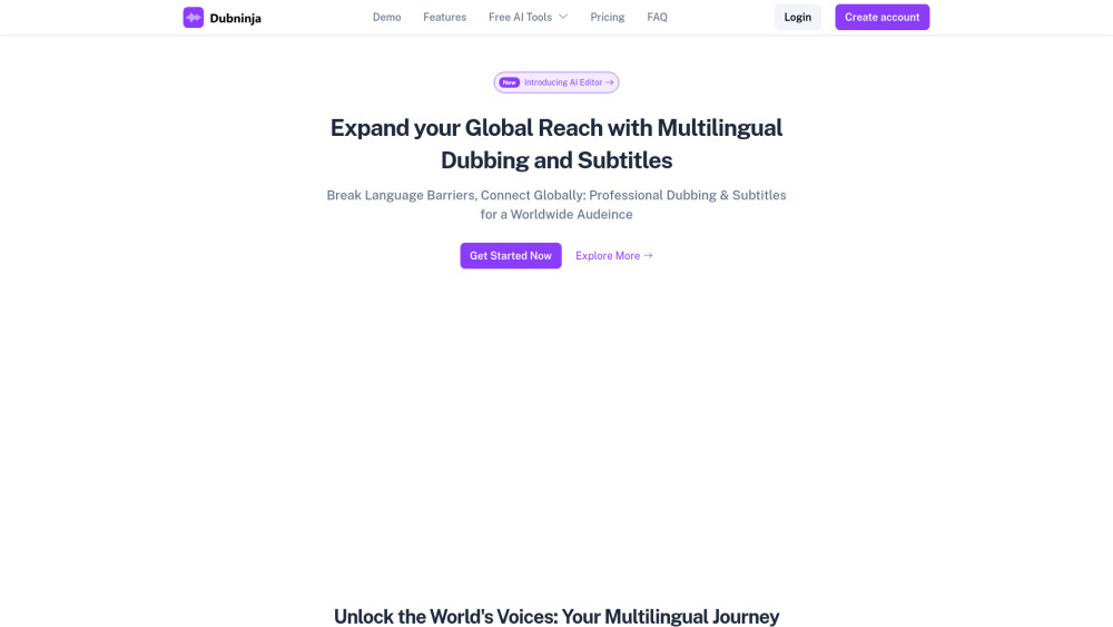 5分钟免费配音 / AI驱动的配音和旁白 / 与原说话者声音匹配 每分钟起价60美分