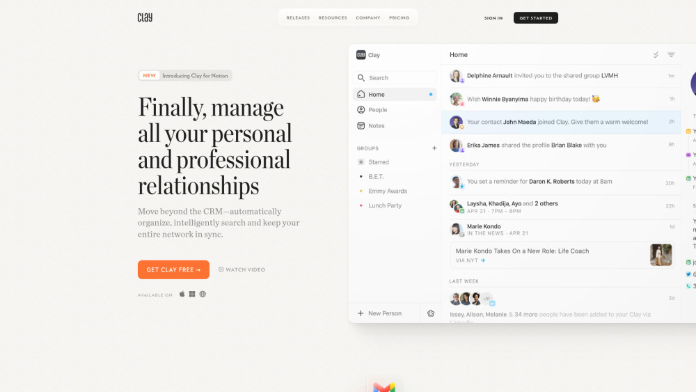 免费 / 自动组织和同步网络 / 自动导入和更新联系人